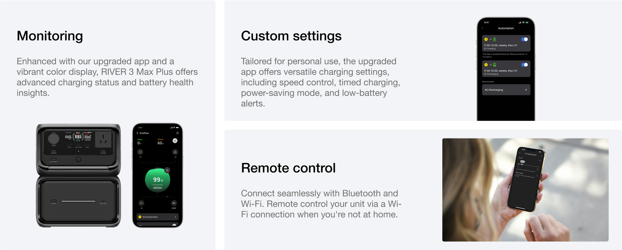 Featuring an advanced algorithm for cloud-based battery monitoring with 40+ safety measures, RIVER 3 Max Plus protects against various current, voltage, temperature, and circuit risks.