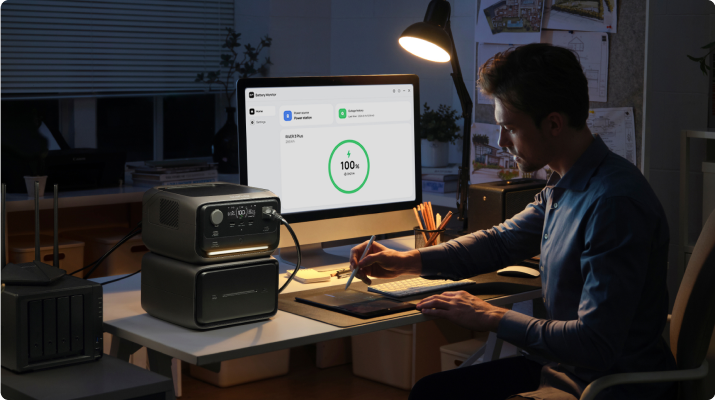 Stay alert during power outages with the RIVER 3 Max Plus, equipped with an LED,app, and software alerts. Its PC and NAS-compatible data interface, along with the EcoFlow software, notifies you and automatically saves data for you when the battery is low.