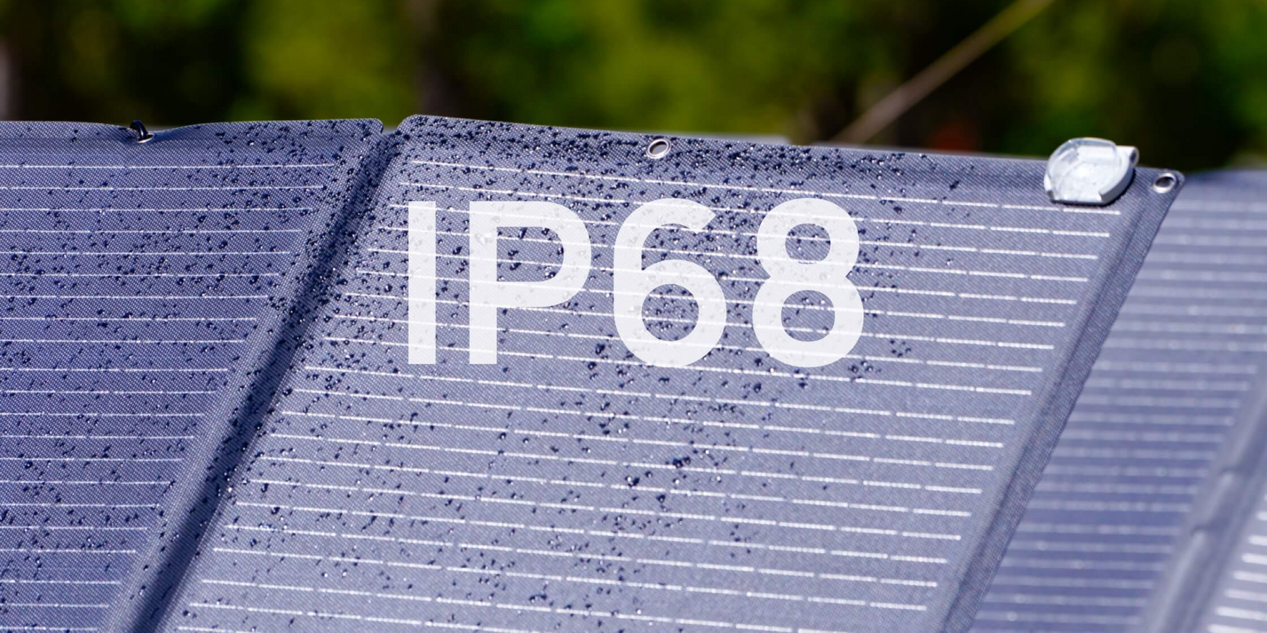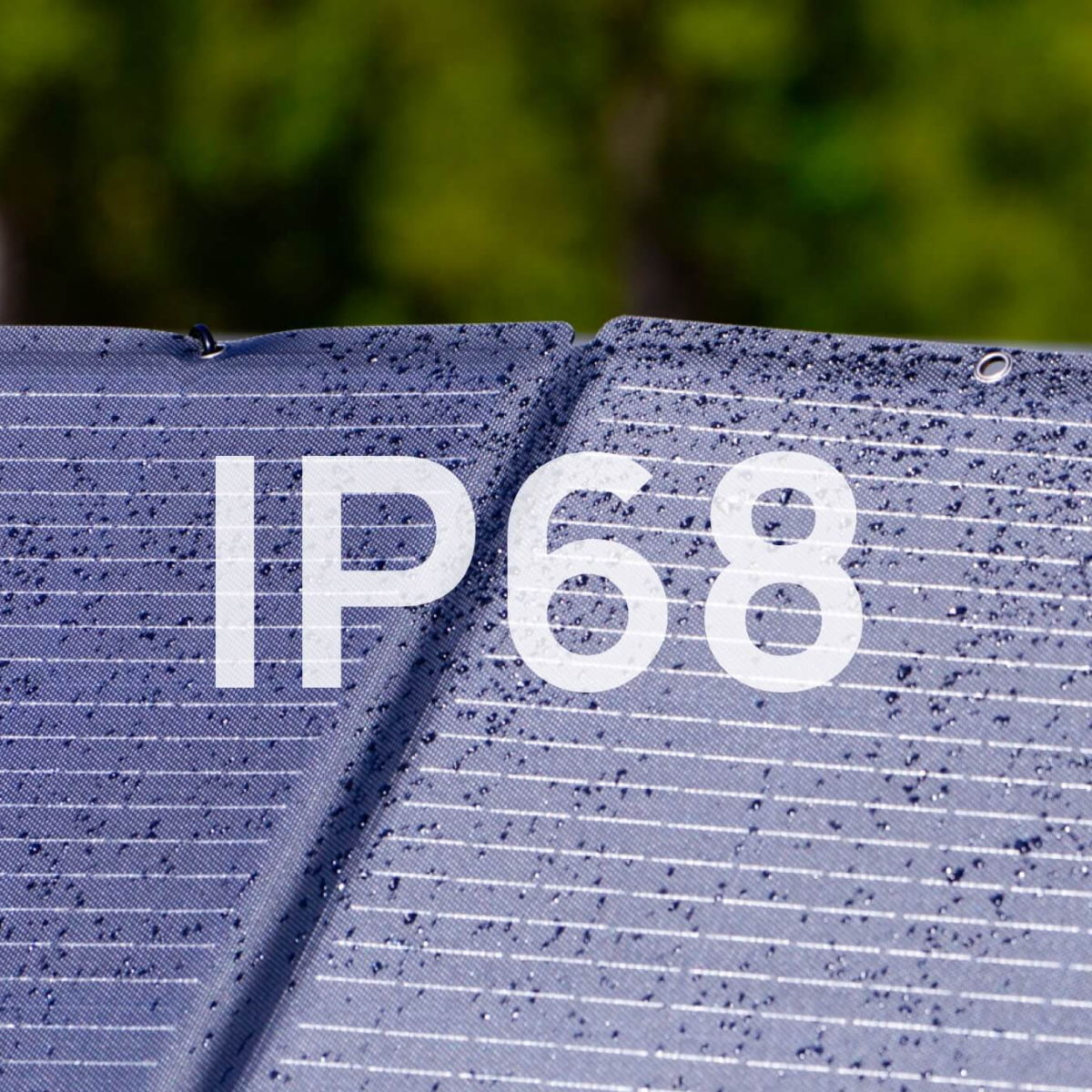Our 400W portable solar panel can carry on collecting energy even during a downpour. With a protective ETFE film and a high IP resistance level of 68, the solar cells can withstand environments from humid and wet to dry and dusty.