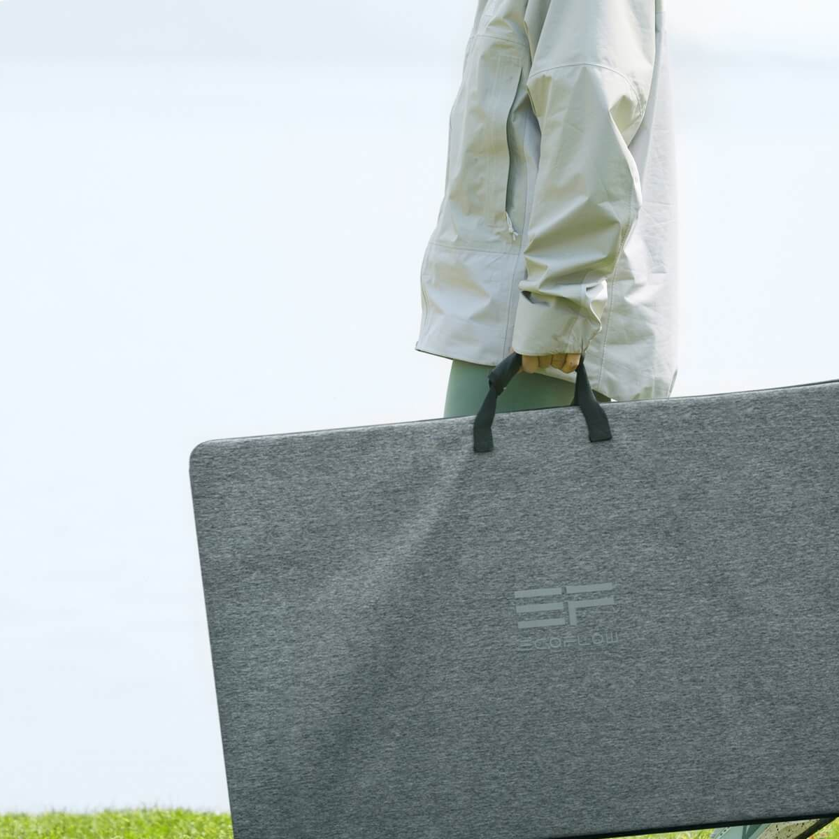 Made from durable and flexible materials, the portable solar panel is perfect for off-grid living and travel. Its multi-layered design offers high impact resistance for the rugged outdoors, while its 27.5 lb light-weight means effortless carrying to a campsite. A rigid layer embedded in the carry case protects the panel from overbending when you carry or store it.