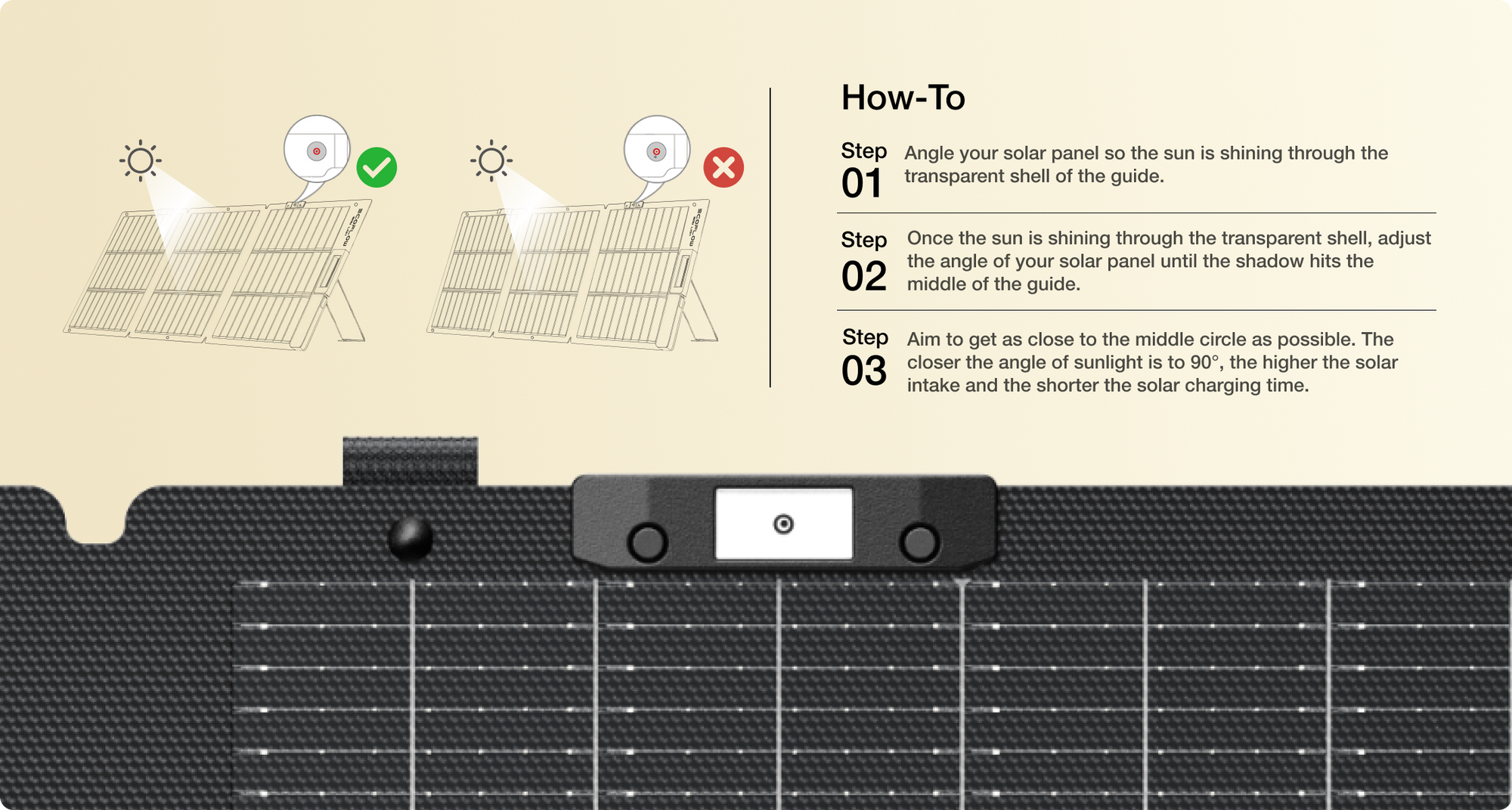 Keep sunlight at a 90° angle and concentrate the sun's rays onto the surface of your solar panel to get the most light at all times.