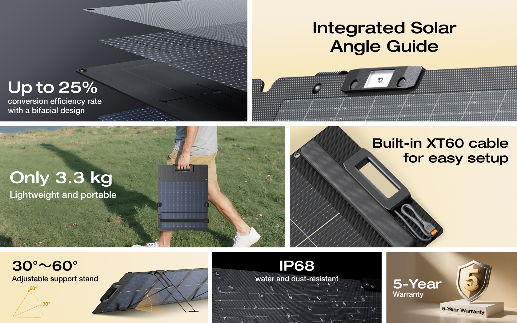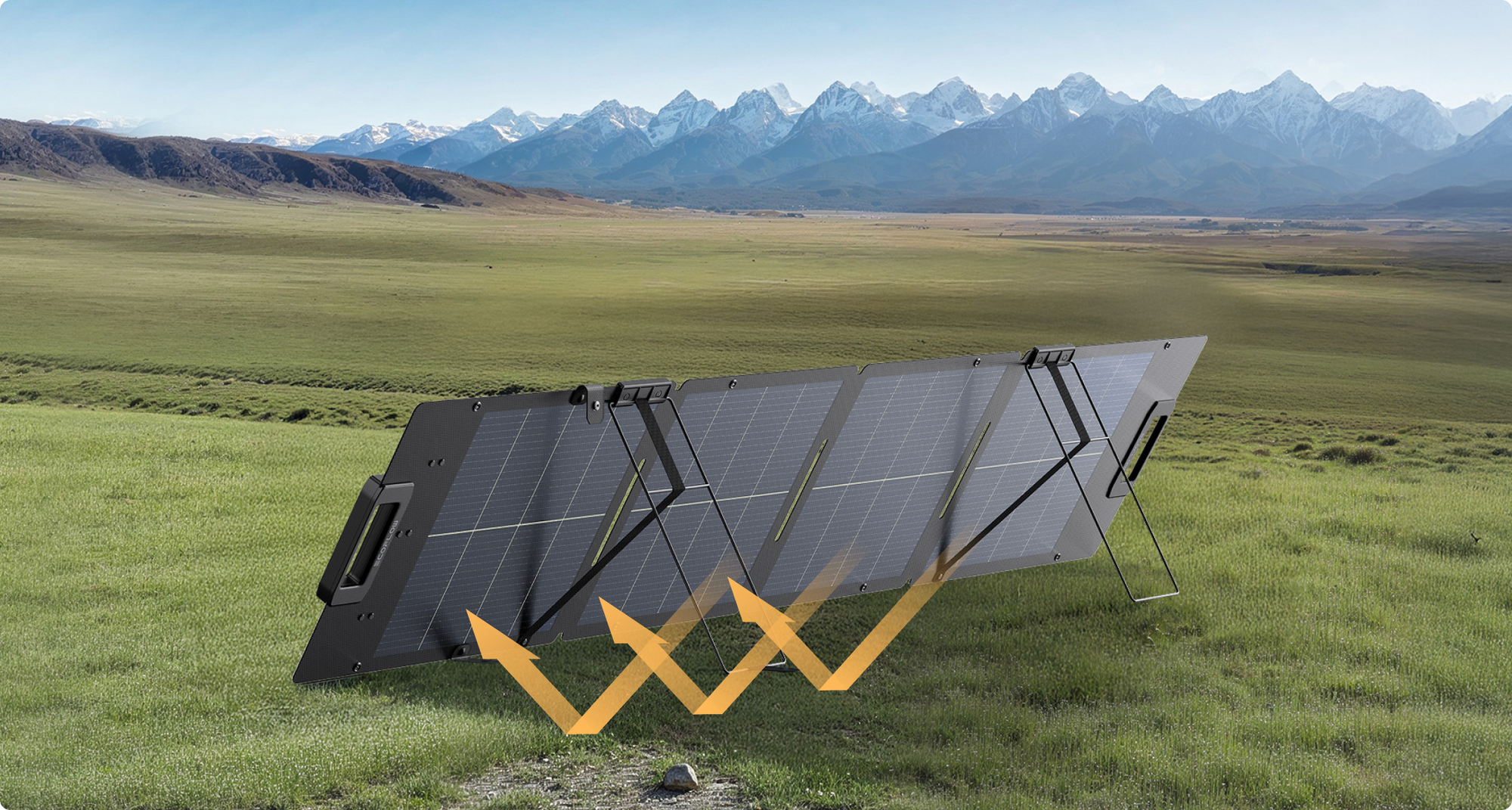 Engineered with advanced lightweight materials, this next-gen solar panel weighs 3.3 kg (0.7 kg lighter than previous models) for effortless transport and compact storage.