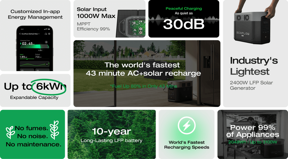 With LFP cells, DELTA 2 Max is safe, durable, and highly efficient, even in warm temperatures.