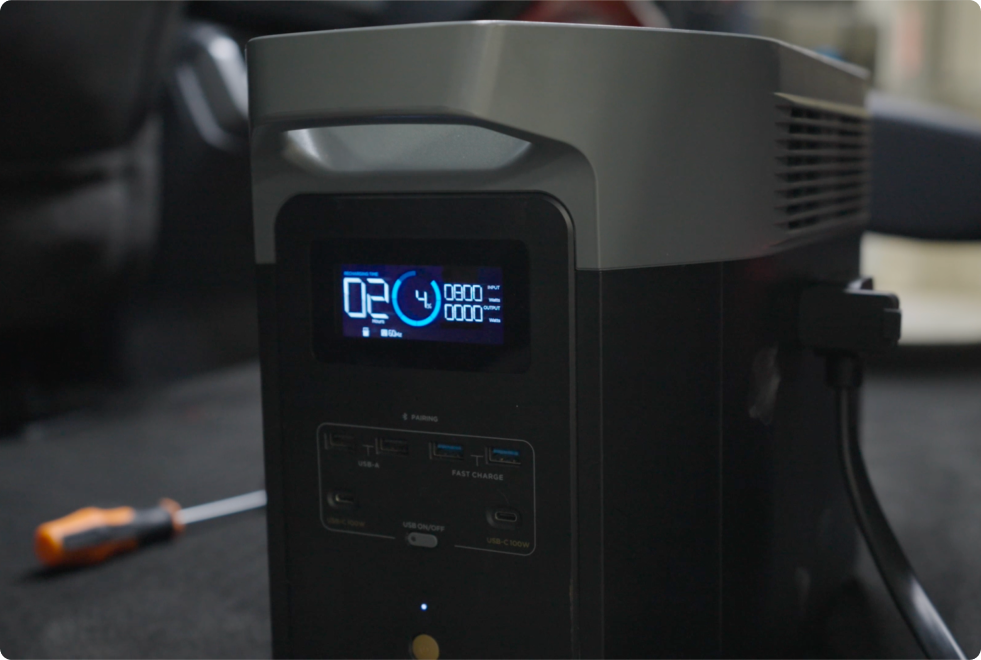 Plug in the output cable from the EcoFlow 800W Alternator Charger to the portable power station.