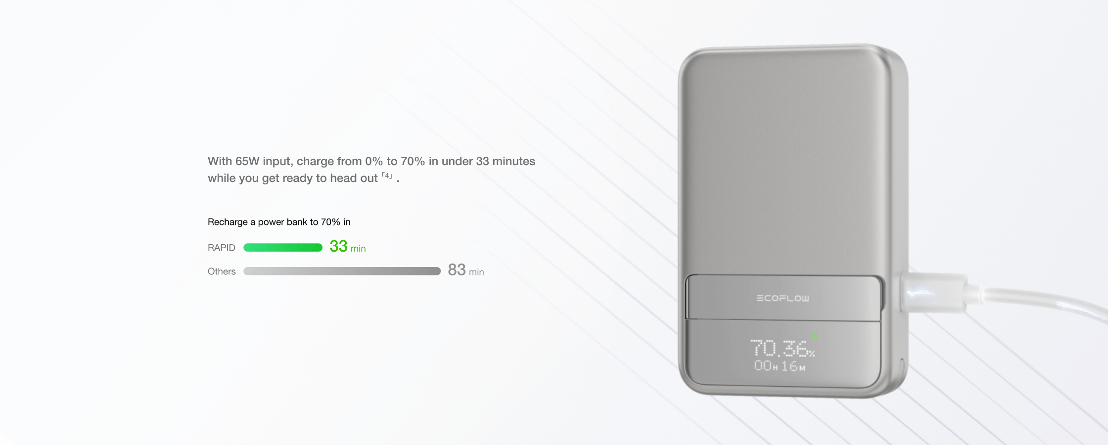 EcoFlow integrates cutting-edge battery and software technology into everyday portable use with RAPID, the new magnetic charging experience.